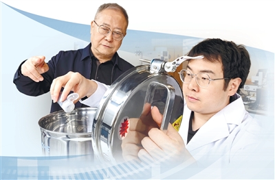 刘加平(左)在指导学生进行混凝土配料比实验。 本报记者 贾丰丰摄