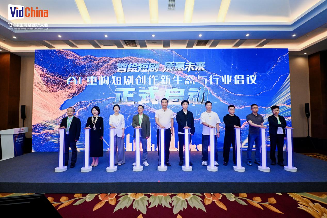 在AI重构短剧创作新生态与行业倡议发布仪式环节,杭州市临平区委宣传部副部长、文创产业发展中心主任叶诚现场宣讲并发布“智绘短剧 质赢未来 AI重构短剧创作新生态与行业倡议”。叶诚介绍,临平自2023年建成临影厂拍摄基地、成立微短剧艺术指导中心以来,已有八部作品入选“跟着微短剧去旅行”。随后,叶诚代表临平区发出三点倡议:秉持匠心打造精品、强化创新推动AI与真人剧融合、坚守合规加强前置审核与产权保护。多位行业代表共同参与倡议发布,围绕AI赋能下的微短剧精品化创作方向与合规发展路径凝聚行业共识,推动产业健康有序发展。